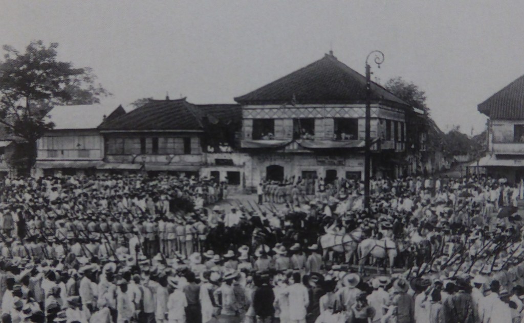 “Verleden week is het feest van de onafhankelijkheid der Philippijnen gevierd met groot vreugdebetoon en een wapenschouwing, waarbij Aguinaldo de Amerikanen, hoewel betreurende hun afwezigheid op dit feest, dank gebracht heeft voor hun hulp aan een onderdrukt volk. De Philippijnen zullen en moeten aan de Philippino’s toebehoren, evenals Amerika aan de Amerikanen, zei hij. Een Philippijnse editie dus der Monroe-leer! Aguinaldo beschouwt zich dan ook in de puntjes als onafhankelijk hoofd ener republiek. … In elk geval zal het in Parijs een interessante discussie worden en nog interessanter is het te weten, hoe men de daar te nemen besluiten op de Philippijnen zal trachten ten uitvoer te leggen.” (De Bazuin, 7-10-1898)
